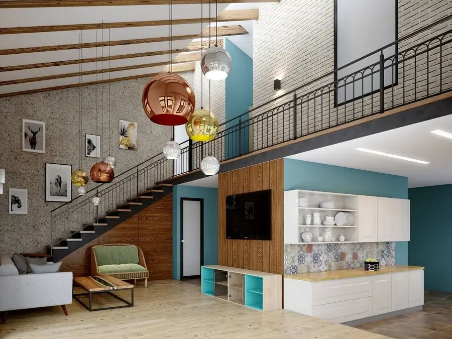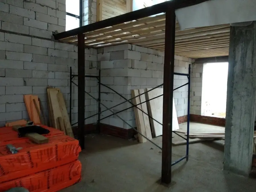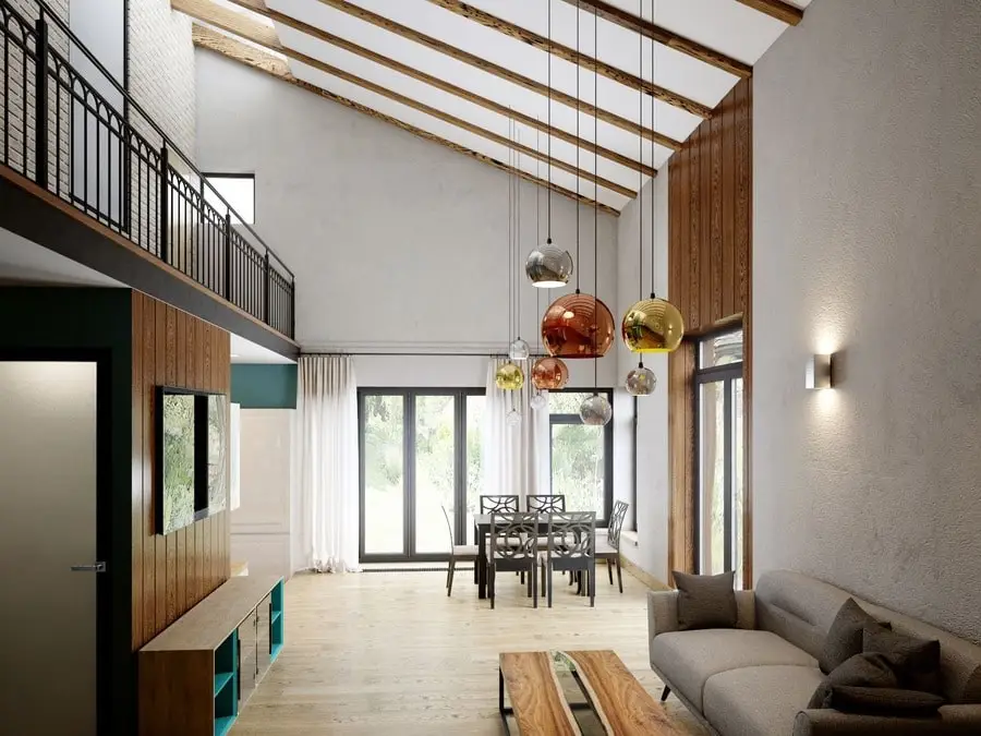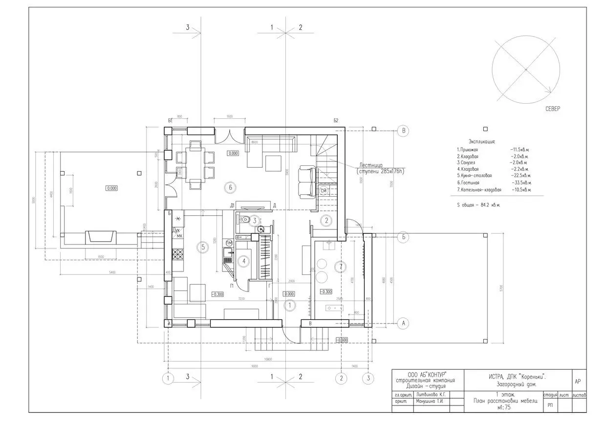 Дом на Новой Риге для семьи из родителей и ребенка. Второй этаж — антресоль, «второй свет» в гостинной, современный дизайн.