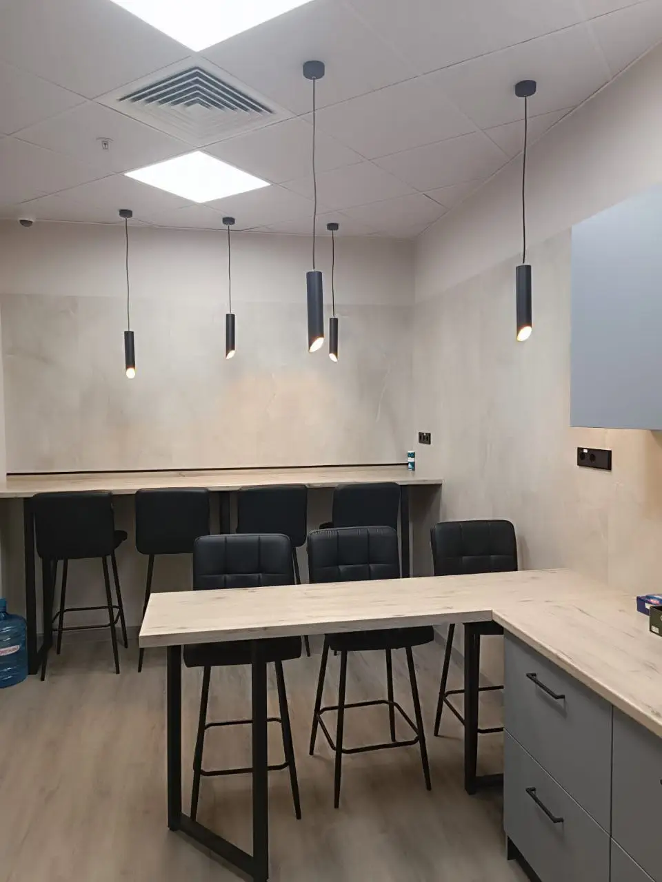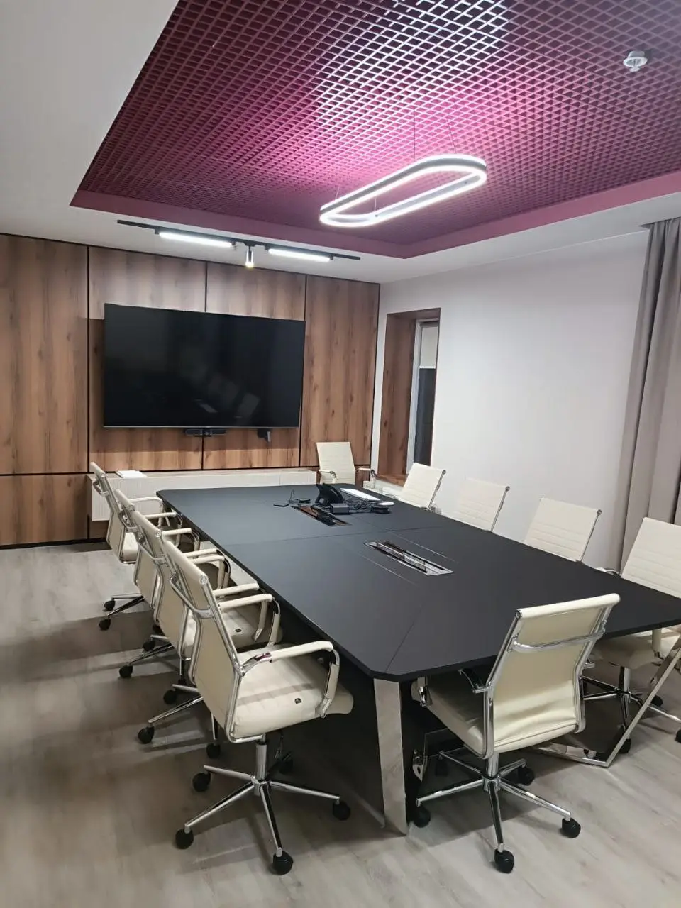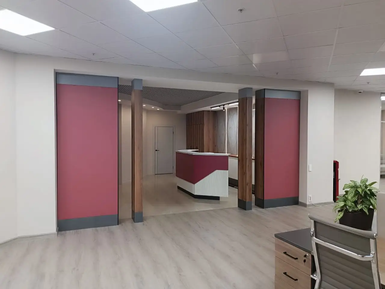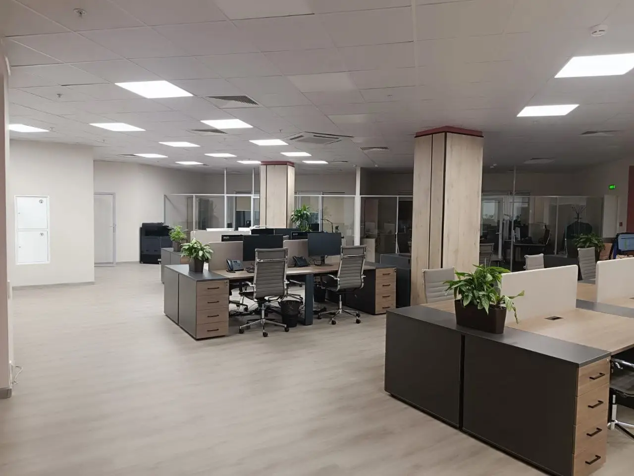 Современный офис компании «Нафтагаз» в Москве, с удобным зонированием, светлыми и удобными рабочими местами, стильным освещением, цветами компании. 500 м2 функциональности и стильного дизайна. переговорные, учебные, санитарные зоны.