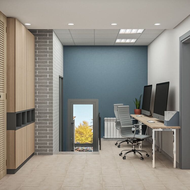 - «Сделать ремонт, по дизайн проекту АБ Контур, в фирменных цветах компании, сине-бирюзовая гамма с бежевым цветом, отделкой деревом в современном стиле, с качественными материалами, светом и модными дизайн-решениями»